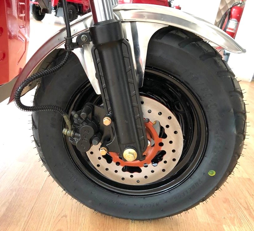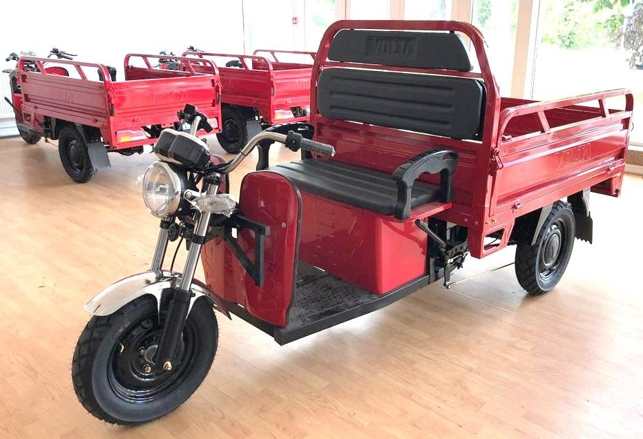 Triciclul Electric Hercules, are bena basculabila, obloane laterale ce se pot rabata, diferential cu treapta de forta (reductor) L/H, frana de parcare, marsarier si limitator de viteza, la buton
